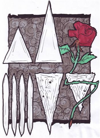 This picture is one that I did a while ago. I find creating and designing these little graphical symbols quite engrossing. My little sketchpad is full of the previous design iterations for theses. I should really scan in some to show of the thought processes. This one is mean to represent the “Demonic Legions of Hell” for my Lost Heroes RPG project. I know it doesn’t have any traditional iconography of demons, but that is in part intentionally as the design is more subtle that way.The second image I’ve only barely finished. This again was intended to be part of my Lost Heroes RPG project. It’s meant to represent the Olympian and associated Gods. I did quite a variety of designs, finally settling this one. But I’m still not completely happy with it. In fact I did two further varianets of it, which you can see below. The first one I wanted to highlight the rose more so I used solid black for the background and tried to add texture with some hatching lines. The second one, I used colour to highlight the rose, a big departure from the previous icons I’ve done. I’d rather keep to the black and white motif (easier to print) but the colour would does look quite nice. Perhaps I should play around with using greys as well as black?