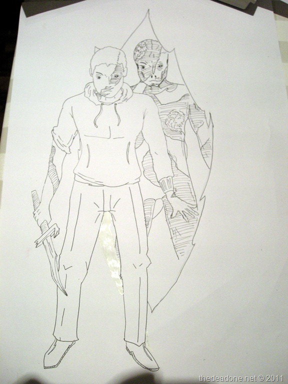 Originally the shadow held a version of the sword that was complete, but the placement of it, looked bad. So I left it out. It’s nice how the image evolved though. This was the last stage before I started adding some shade: