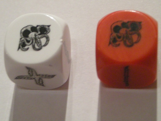 As part of winning these custom dice, I have to do a review of them. However I haven’t gamed in months, certainly not since I received the dice. So instead I’m doing a “part 1” of the review now, which is, in a sense, a bit weird as it’s my design on the dice! Part 2 will come when I actually get to game.